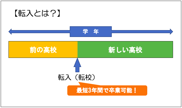 編入とは、前の全日制高校を一旦退学して、新しい高校に入り直すことです。