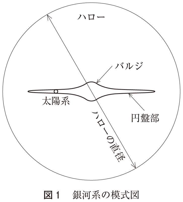 - 私たちの銀河系は天の川銀河とも呼ばれ(以下、銀河系と呼ぶ)、図1のような構造であると推定されている。銀河系はバルジと円盤部とそれらを取り巻くハローと呼ばれる部分からできている。