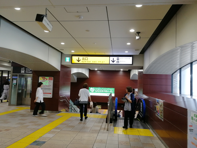 JR線からお越しになる場合は、中央改札を出て、北口方面に向かってください(その後、下記[1]へ)。