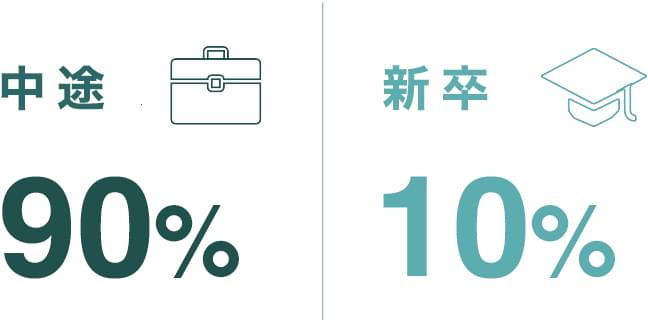 若い組織ということもあり、結果としてほとんどの社員が中途入社です。
