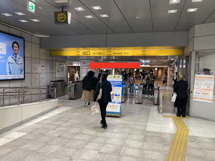 • [1]ホームから東京寄り階段を下りて南通路を通り、広小路口改札へ向かいます。