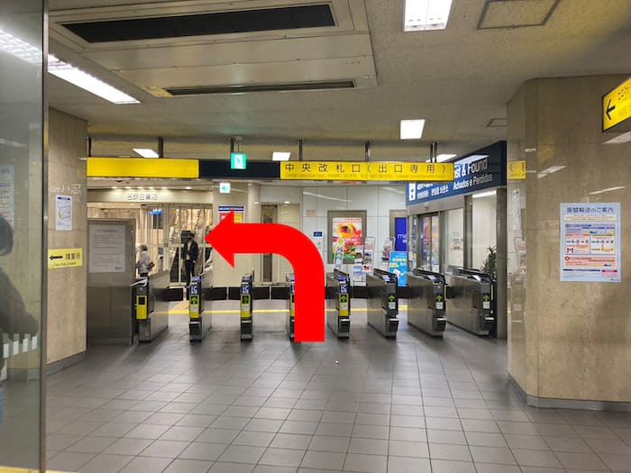 • [1]降車ホームの中央寄りの階段を上り、中央改札口から出ます。