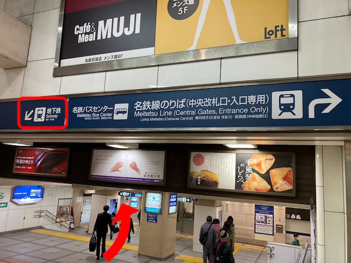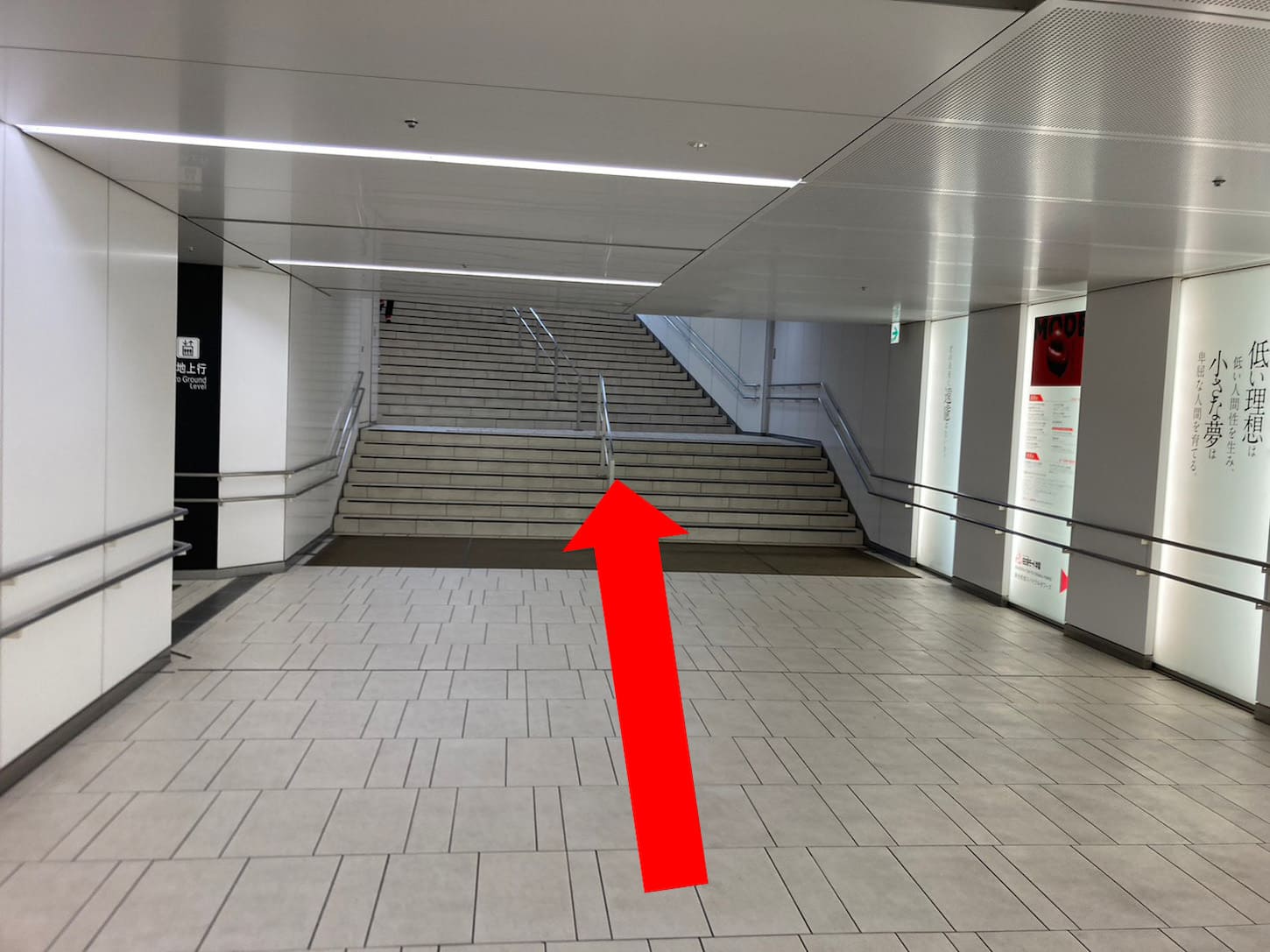 • [2]地下鉄への案内盤がある階段を下りて左(地下鉄方面)へ進みます。