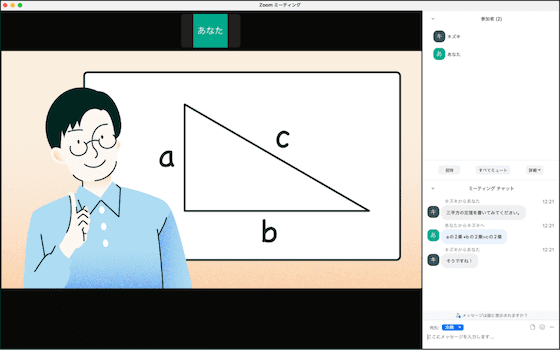 音声とチャットだけでも大丈夫です。その場合、ホワイトボードやノートを映像でやり取りする代わりに、チャット機能を多く使います。