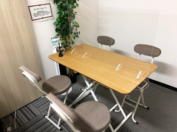教室に入ってすぐのところに、相談のためのスペースがあります。入塾前のご相談はこちらで行います。入塾後も、勉強・進路・生活などについてのご相談をお受けしています。