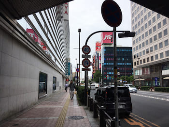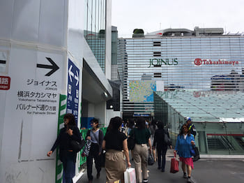 [5]髙島屋を左手に進み、突き当りを左折します(右手の階段には登りません)。