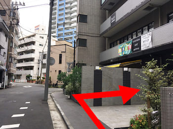 [14]インターホンで「201」と押した後、「呼び出し」を押してください。 スタッフがロックを解除しますので、エレベーターで2階まで上がり、右側1つ目の扉までお越しください。
