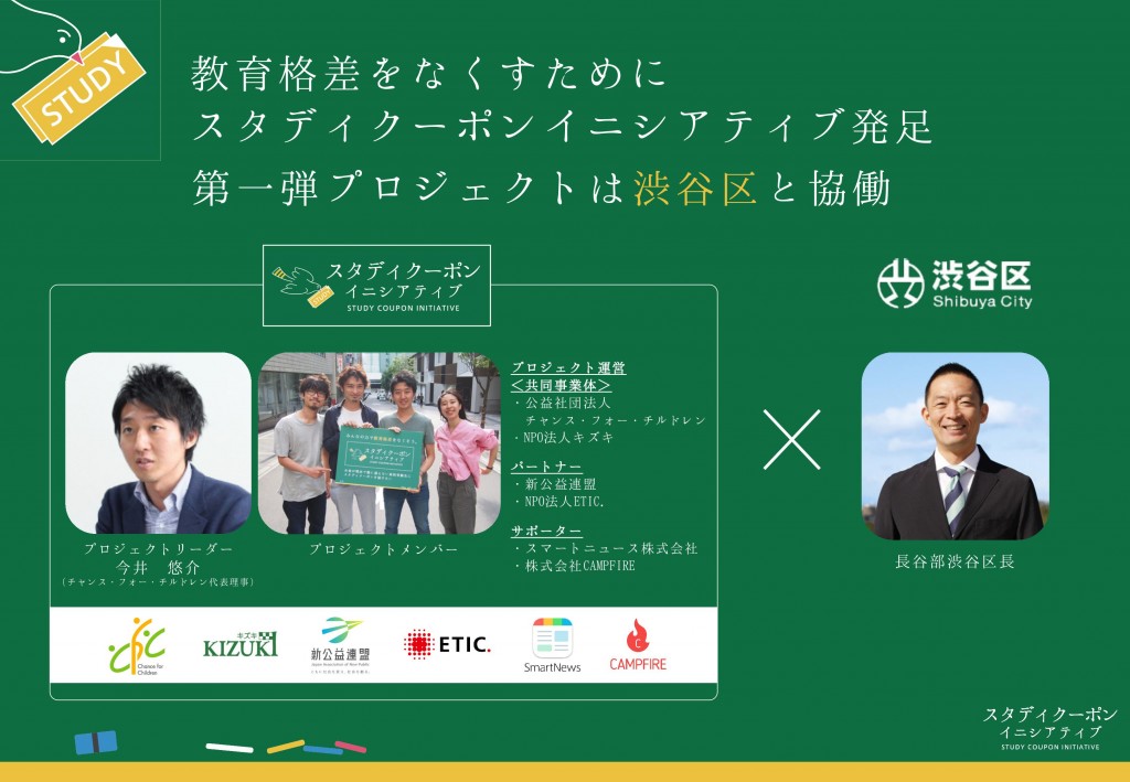 教育格差解消プロジェクト『スタディクーポン・イニシアティブ×渋谷区(寄付型クラウドファンディング)』のお知らせ