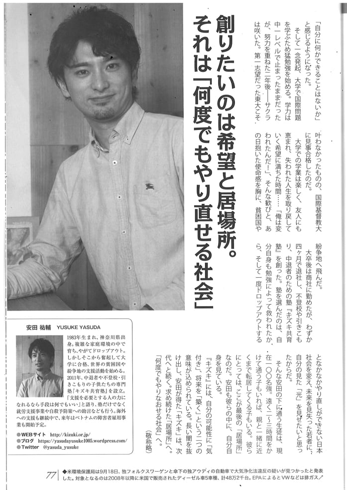月刊私塾界2015年11月号にて代表の安田が紹介されました。